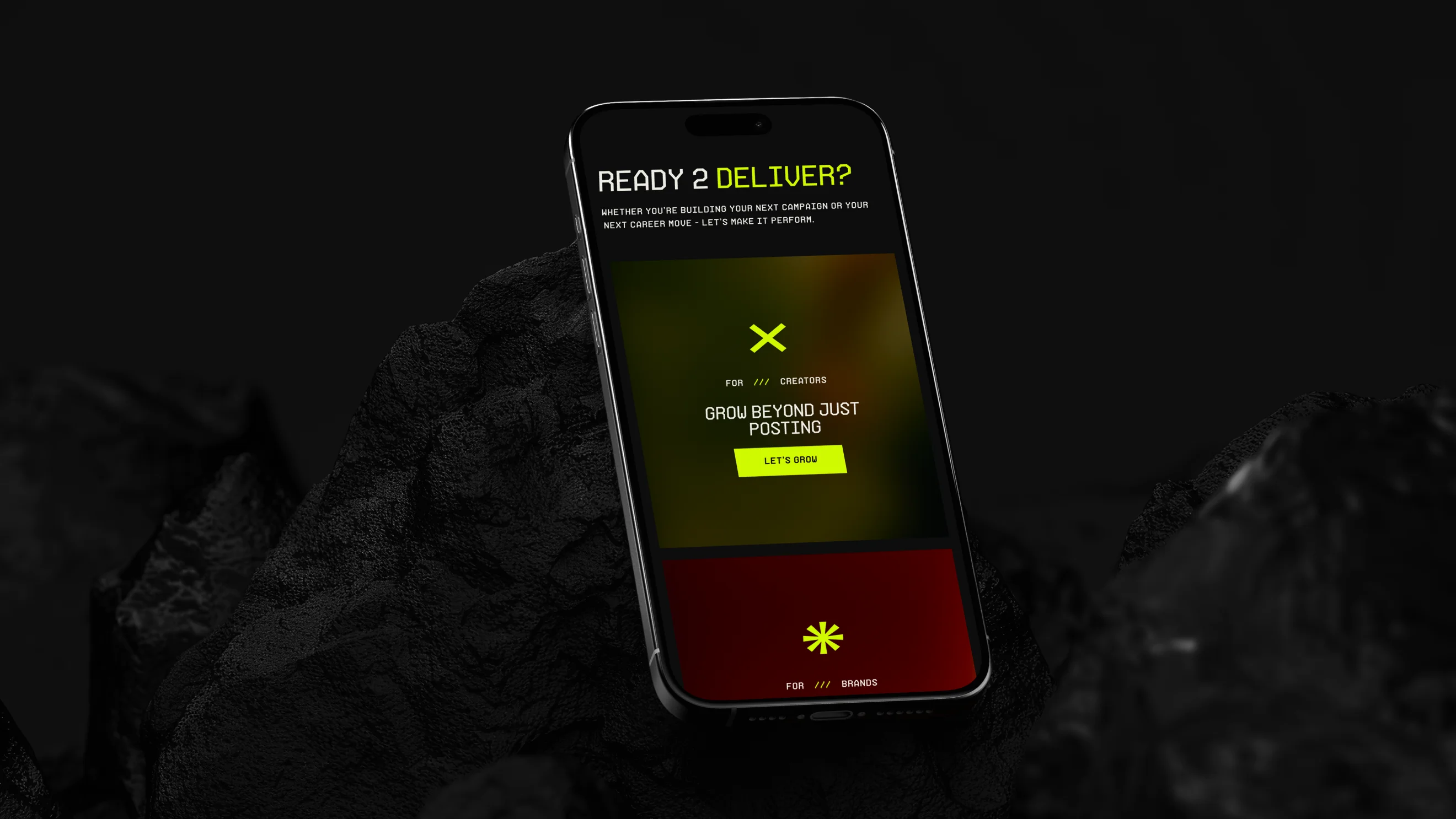 N2D je performance-orijentisana influencer agencija koja povezuje brendove u rastu sa kreatorima visokih performansi. Njihov rad se nalazi na preseku preciznosti, discipline i brzine - i bio im je potreban sajt koji to jasno reflektuje. Međutim, izgradnja za dve različite publike (brendove i kreatore) zahtevala je više od dobrog vizuelnog identiteta. Zahtevala je oštru strukturu, dual-flow UX sistem i copy koji komunicira sa jasnom namerom.
